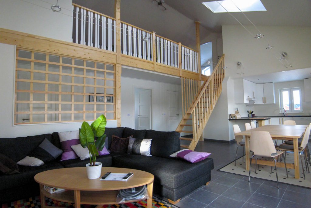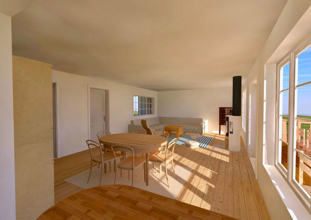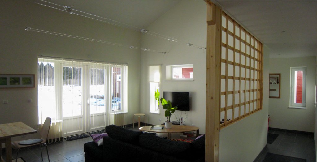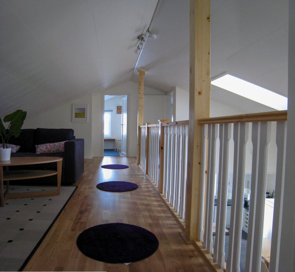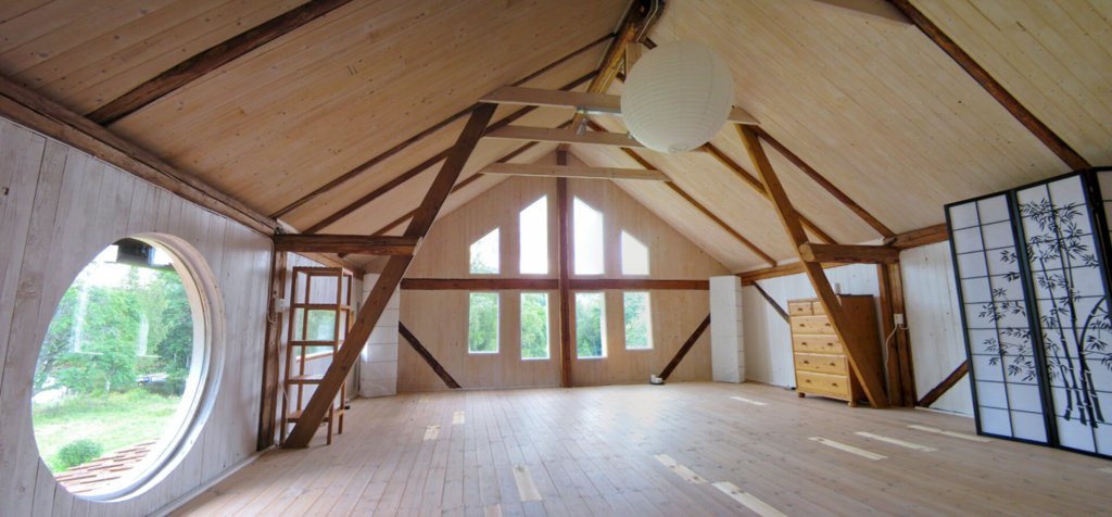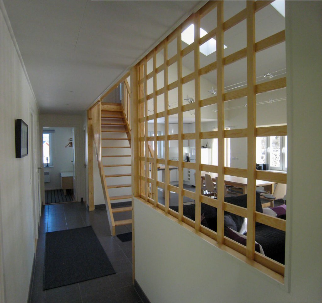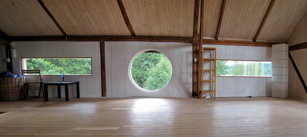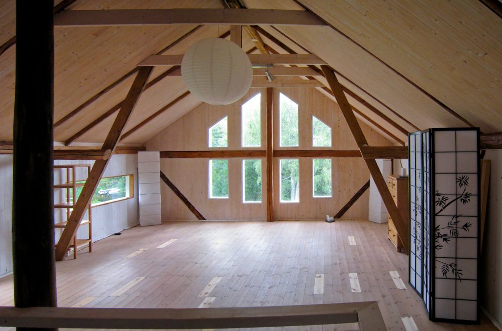 Omdaning av befintlig äldre lada till övernattning samt liten samlingssal/kurslokal. Beställarna vill gärna ha en Zen-inspirerad interiör. Formspråket blandar lite av japansk enkelhet och svensk lantlig tradition. Något senare i processen tillkom också en extra utvändig trappa.