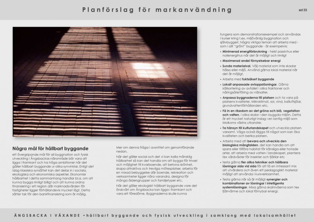 Långsiktig vision för utveckling av närområdet kring Ängsbacka kursgård i Värmland. Utarbetat ca år 1998-2000. Visionsdokumenten har fungerat som inspirationsmaterial och diskussionsunderlag. Fokus på hållbarhet i flera dimensioner; ekologisk odling, kretsloppsanpassade flöden, förnybar energi, byggandsvård mm.
