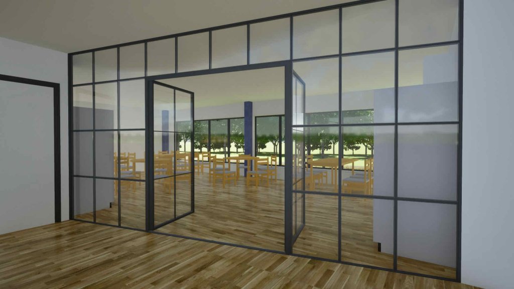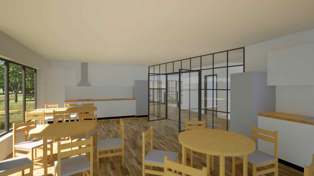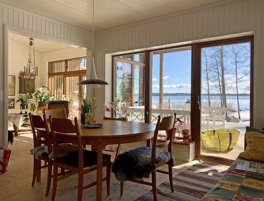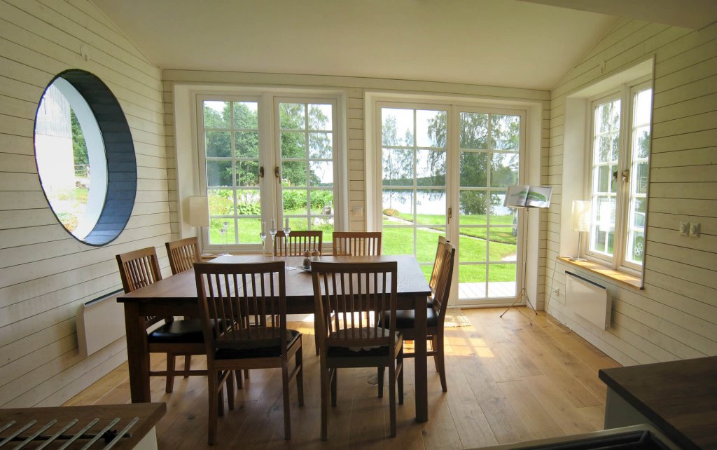 Ett kök som även ibland används som kurslokal behövde en ny rymlig matplats som tog vara på möjlighet till utsikt och ljusinfall.