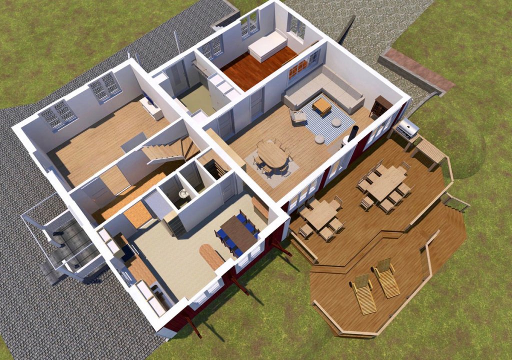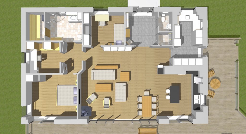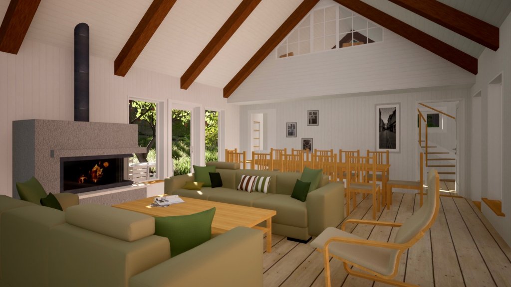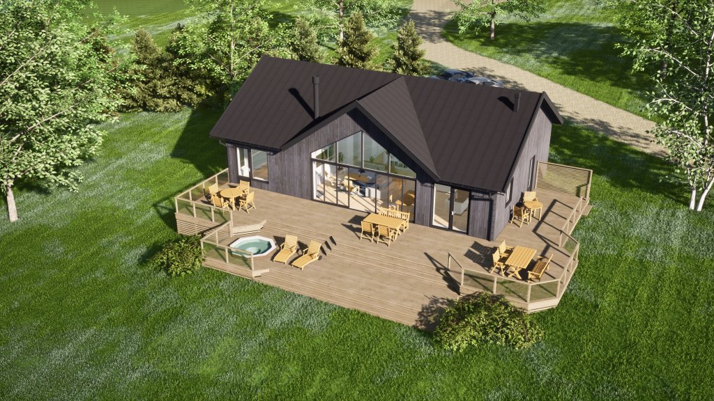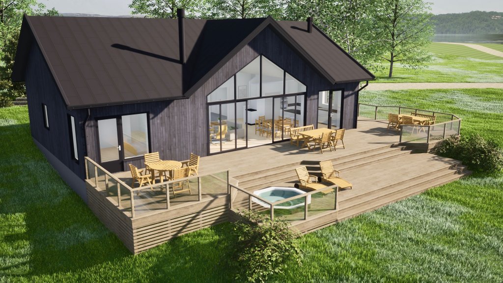Förslag för ett lite större fritidshus i Kalhyttans fritidsby under utveckling nära Filipstad. Konceptet är privat ägande med time-sharing/uthyrning och bokning via internet.