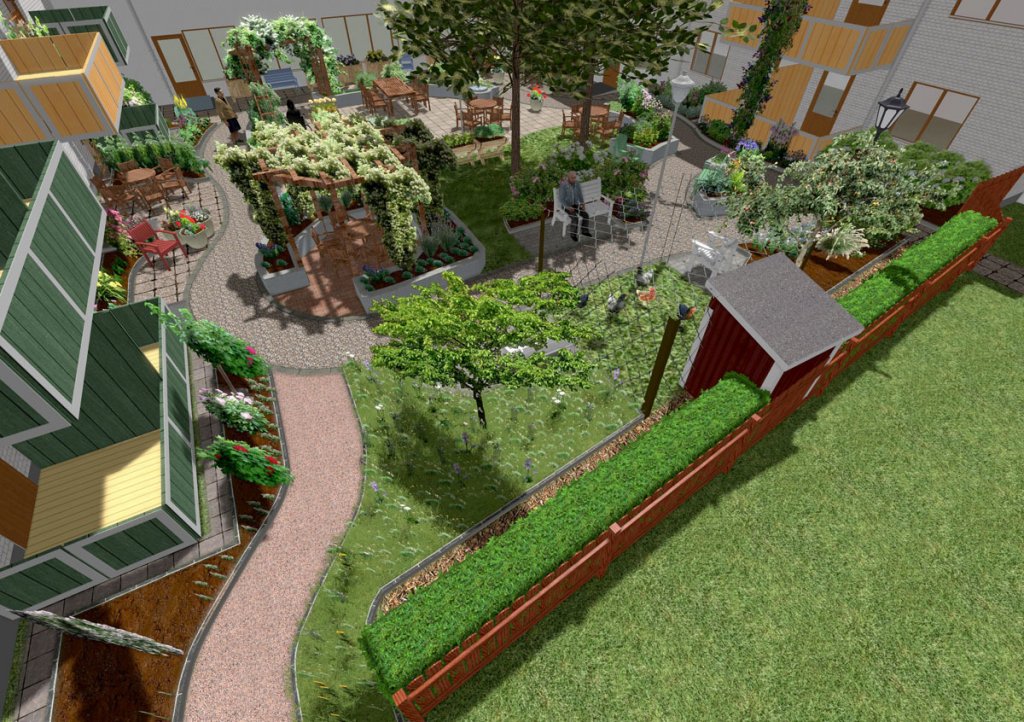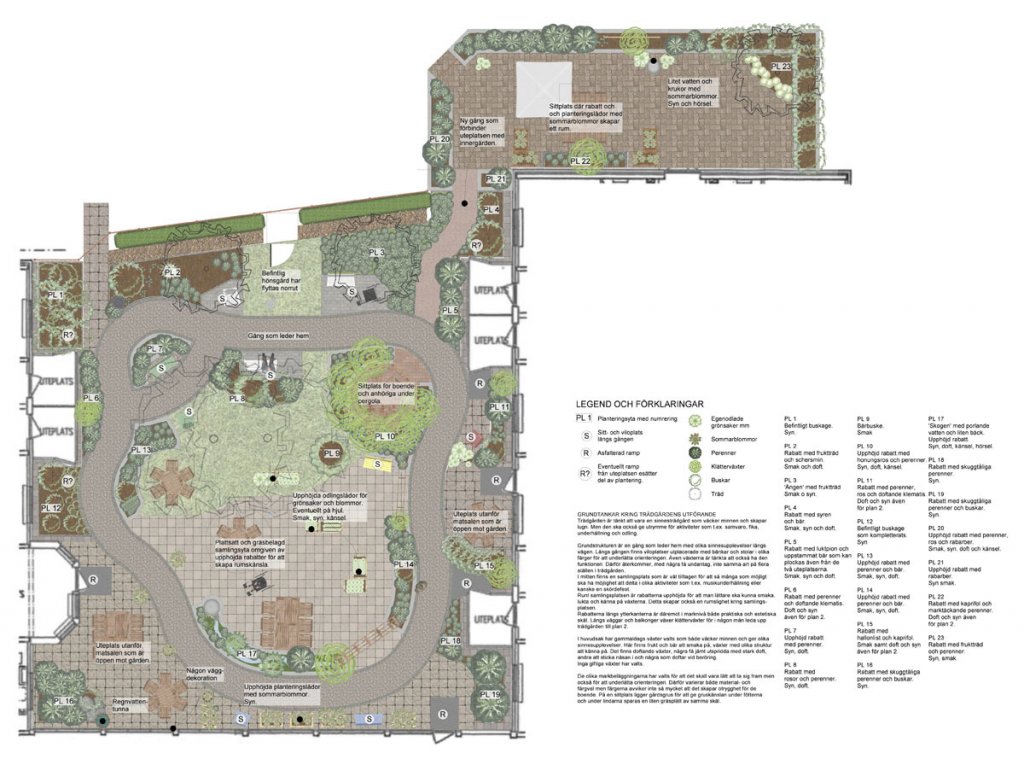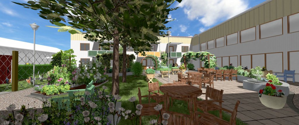 Utemiljön vid boendet är svårtillgänglig och eftersatt men personal vid boendet vill kunna använda gårdsrummet mer för de boende. I samverkan med personalen tas ett förslag fram för en sinnesträdgård som ger kognitivt stöd för de boende men som också ger plats för olika aktiviter, samvaro och vila för själen.