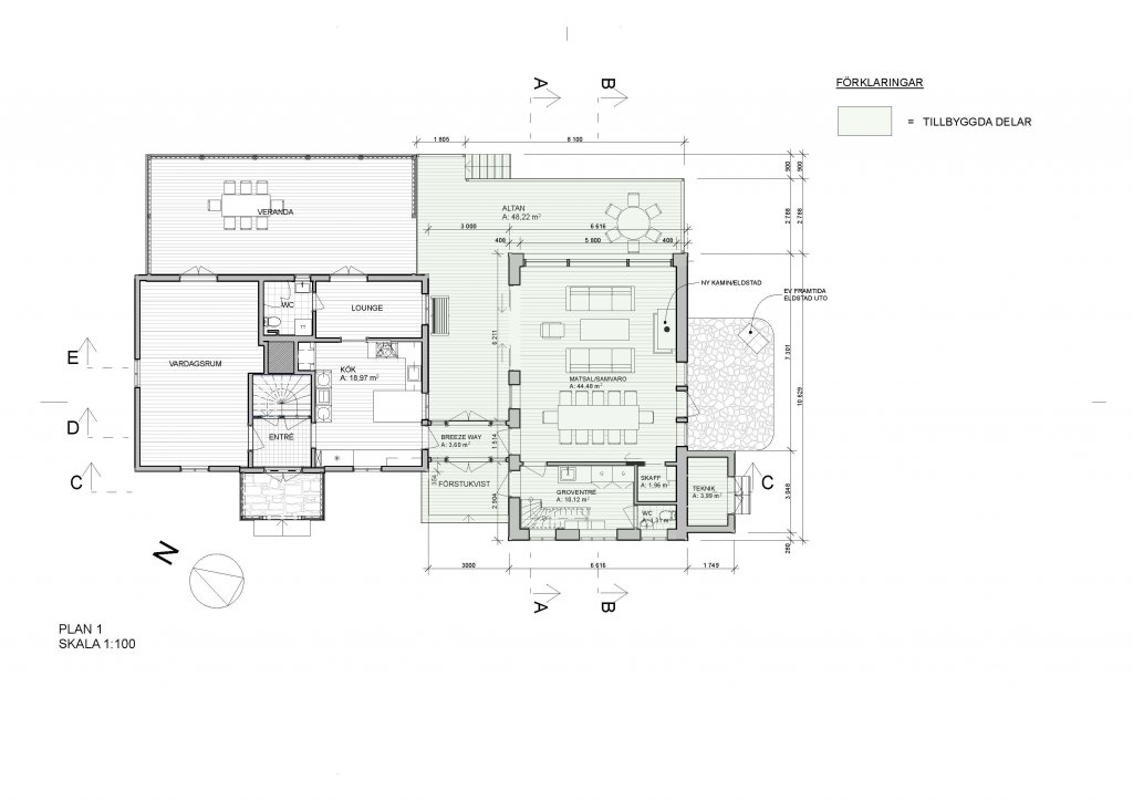 Förslag för lite större tillbyggnad på befintligt fritidshus/äldre gårdsbyggnad i i Råda i Värmland. Samvarorum, ny groventré/förråd samt gäst- och arbetsloft mm.
