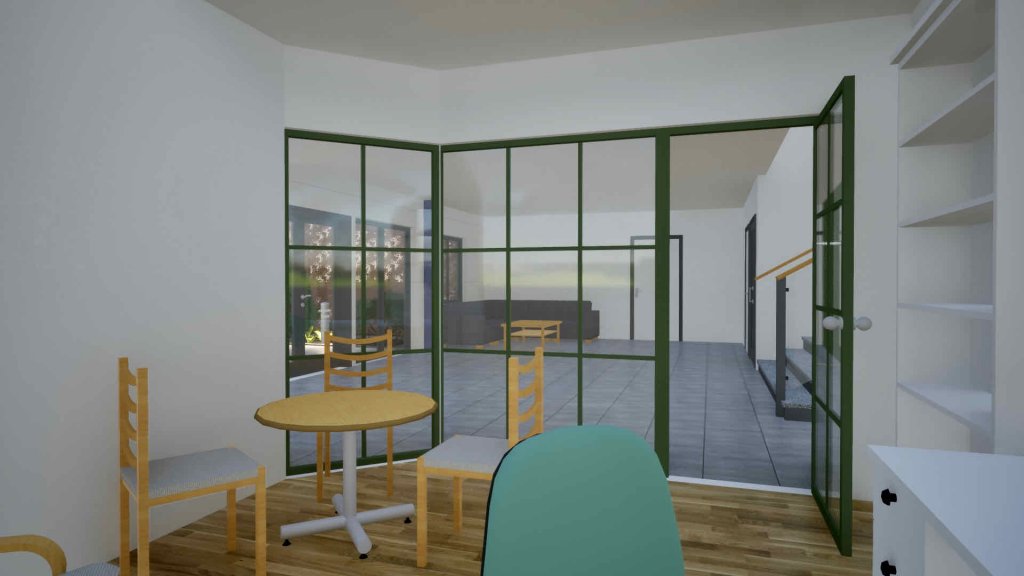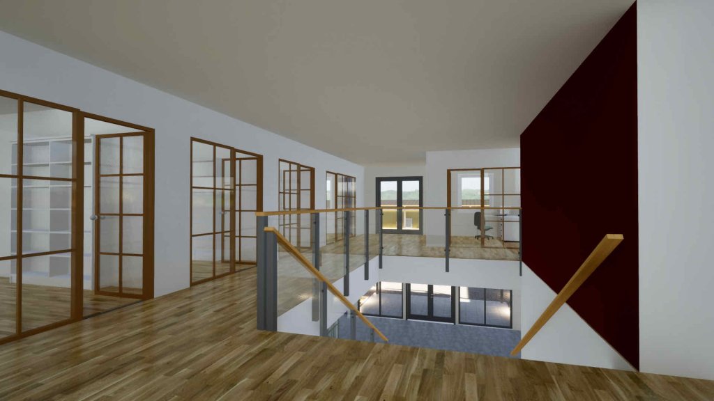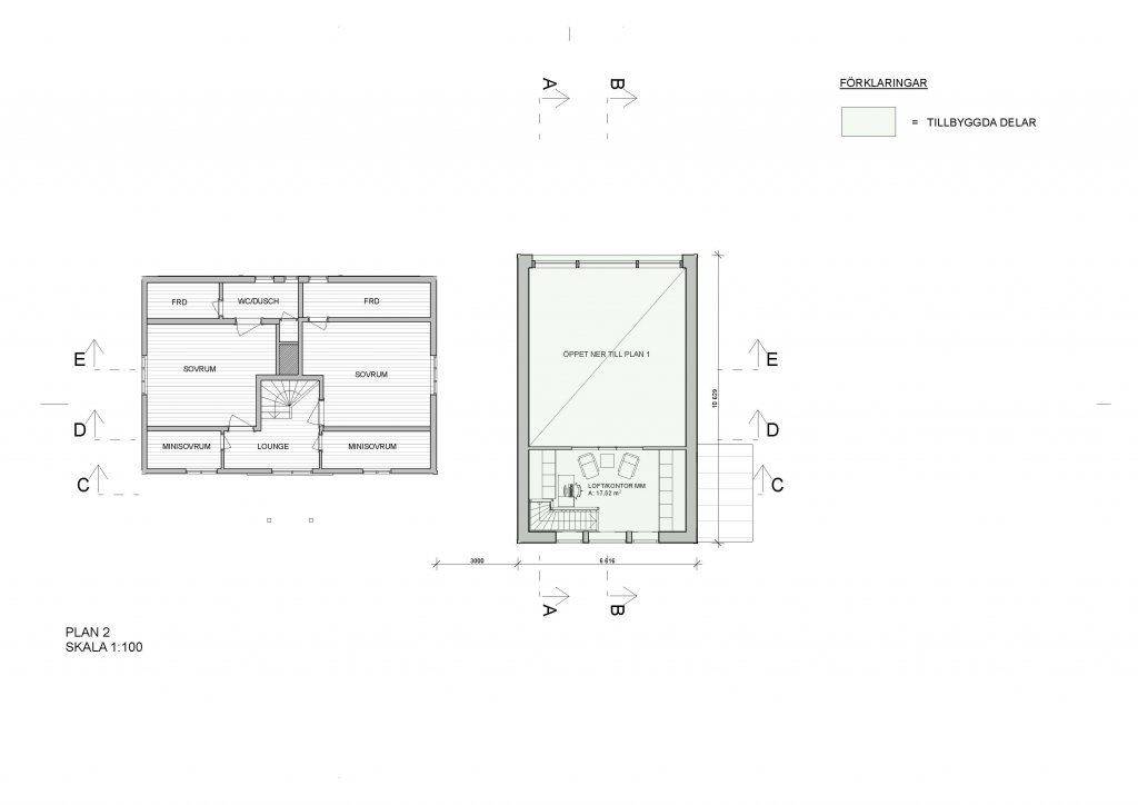 Ett par förslag tas fram som blir inspirationsmaterial för omdaningen. Delvis ändrade förutsättningar med behov av större kontorslokaler för egna företaget gör att det slutliga resultatet utvecklas och justeras under byggprocessen.