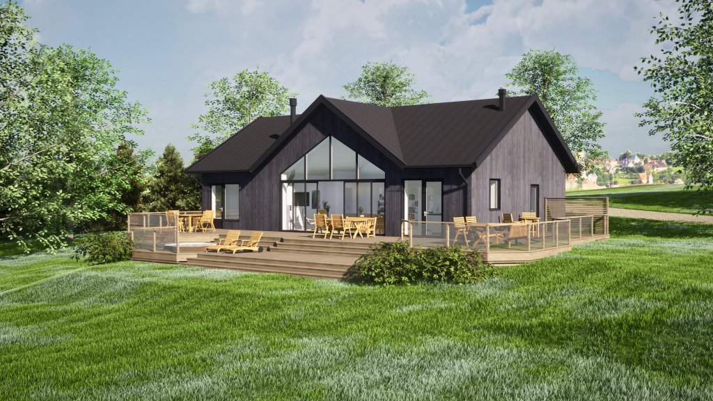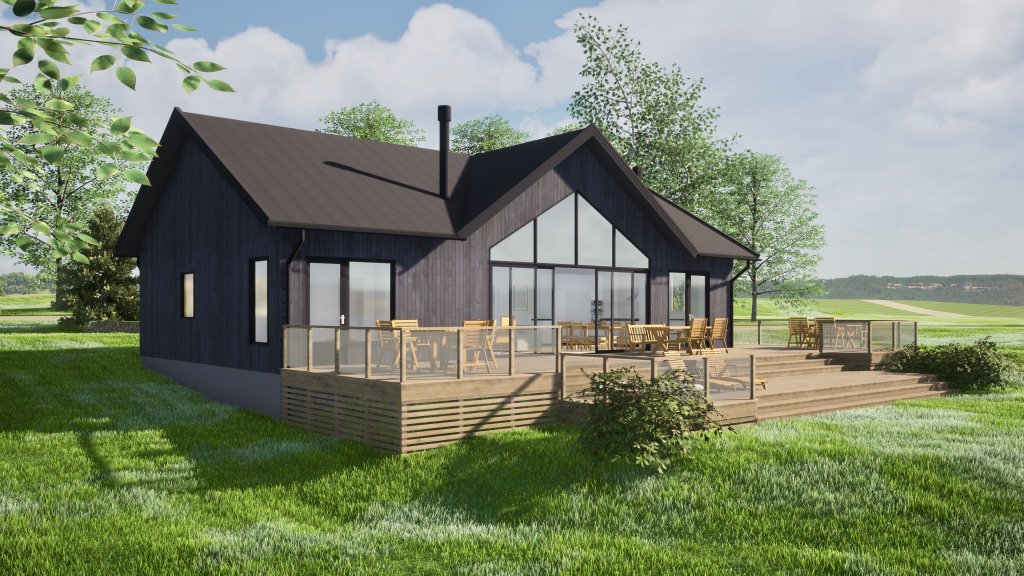Nybyggnation av enplans villa vid sjön Möckeln i Värmland.