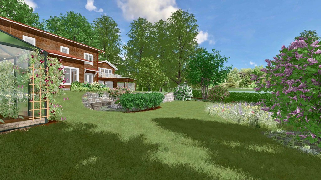 Förslag för utveckling av trädgård och utemiljö på större delen av tomten vid en villa vid sjön Alstern.